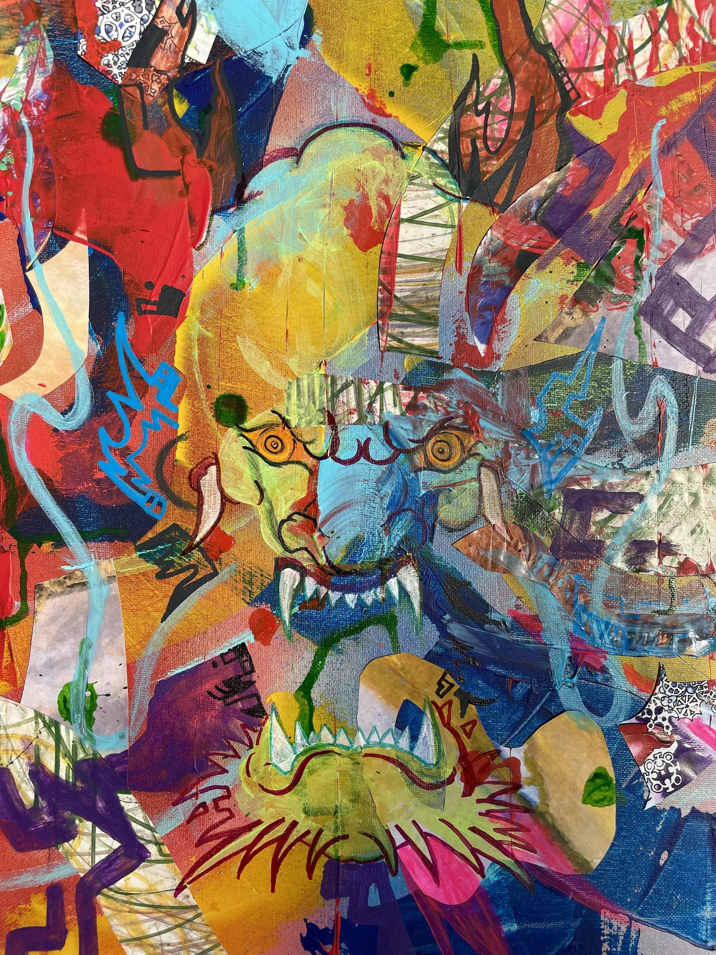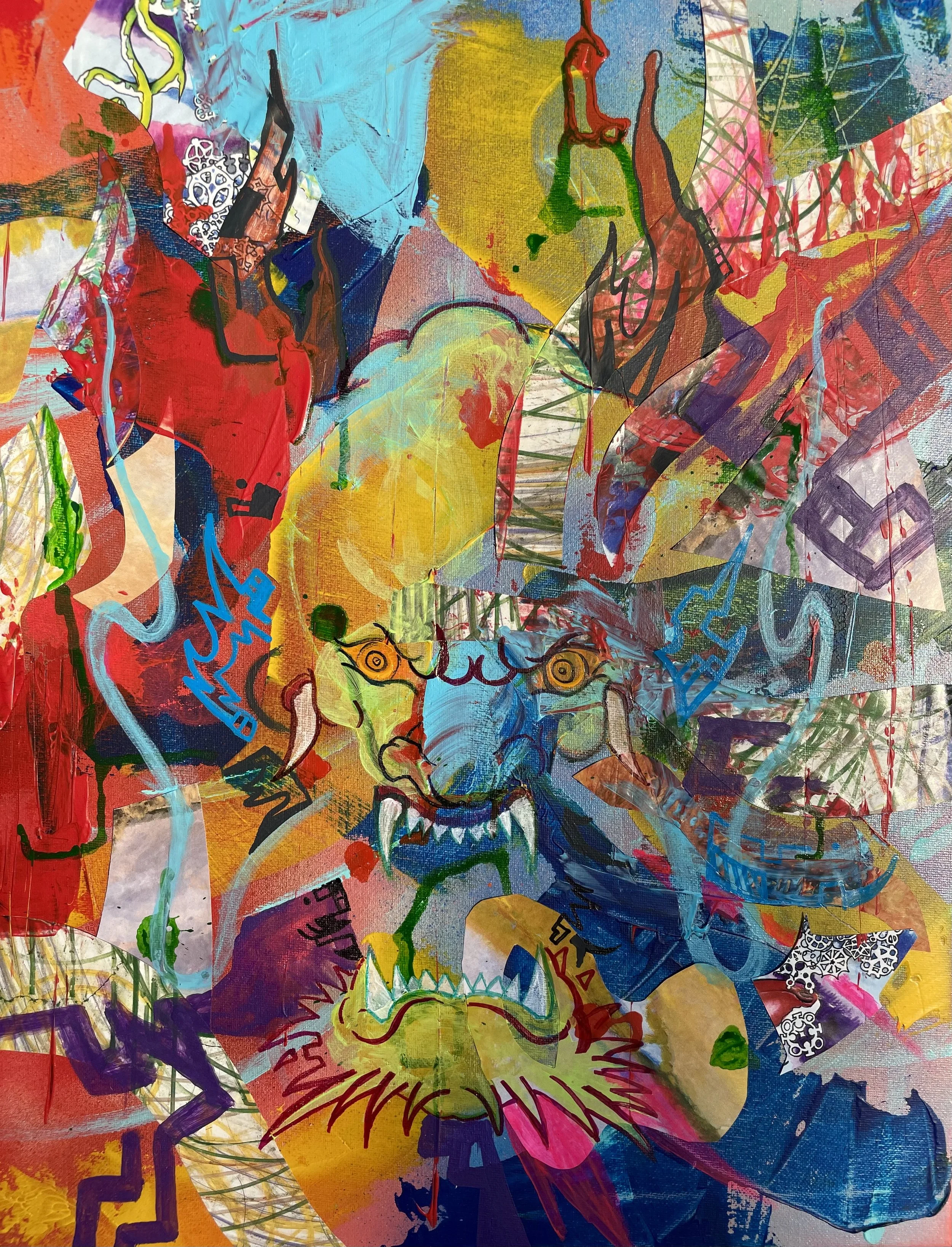 Atomic Dragon • Atomic Dragon • Atomic Dragon • Slide 1 Slide 1 (current slide) Slide 2 Slide 2 (current slide) Slide 3 Slide 3 (current slide) Atomic Dragon Mixed Media on Canvas, 16 x 20", 2022