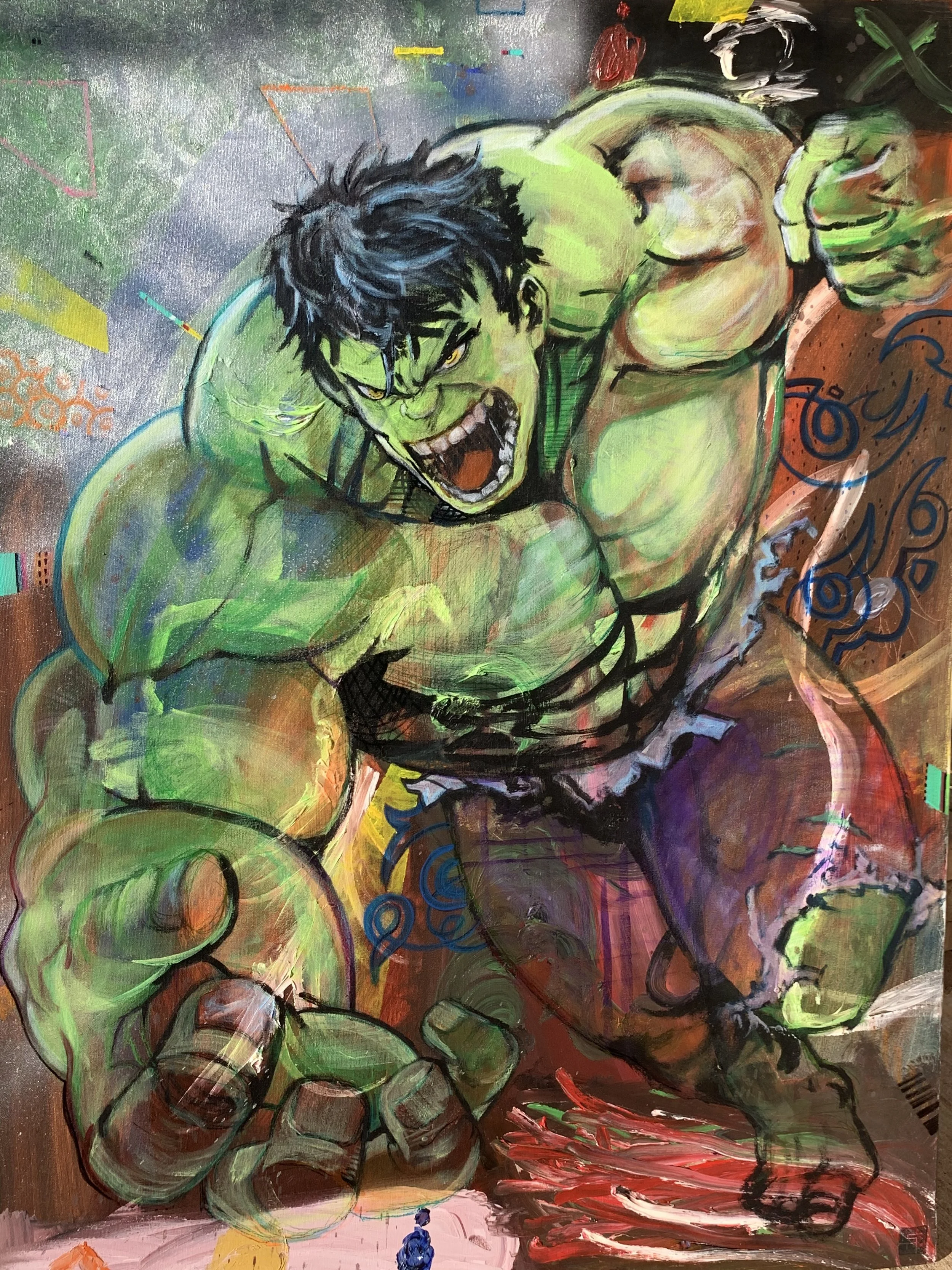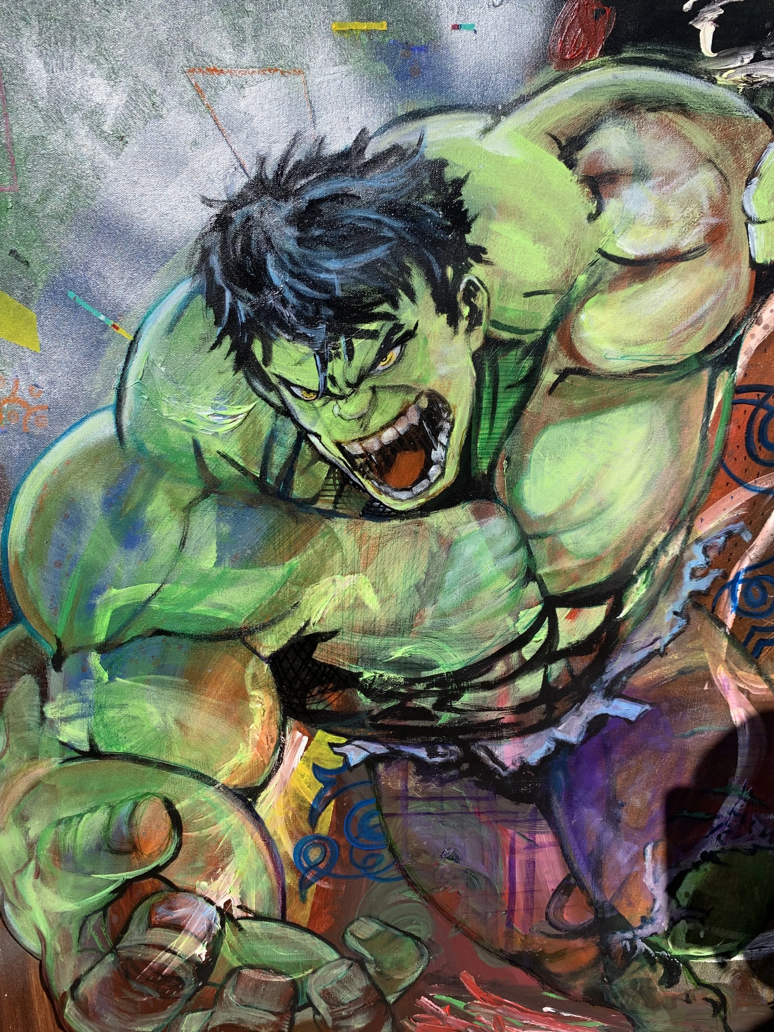 HULK SMASHH! • HULK SMASHH! • HULK SMASHH! • Slide 1 Slide 1 (current slide) Slide 2 Slide 2 (current slide) Slide 3 Slide 3 (current slide) Slide 4 Slide 4 (current slide) Slide 5 Slide 5 (current slide) HULK SMASHH!Mixed Media on Canvas, 36 x 48", 2021