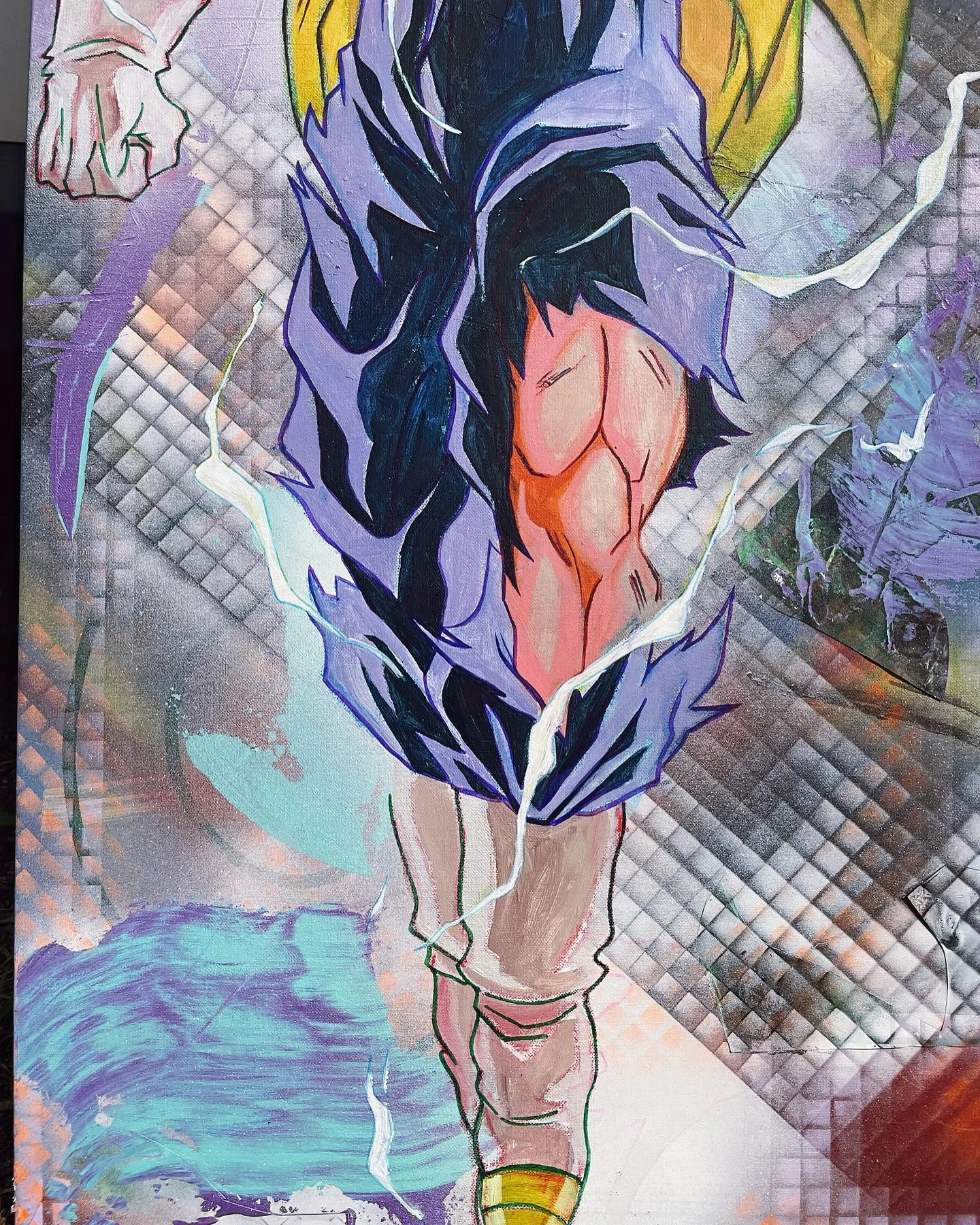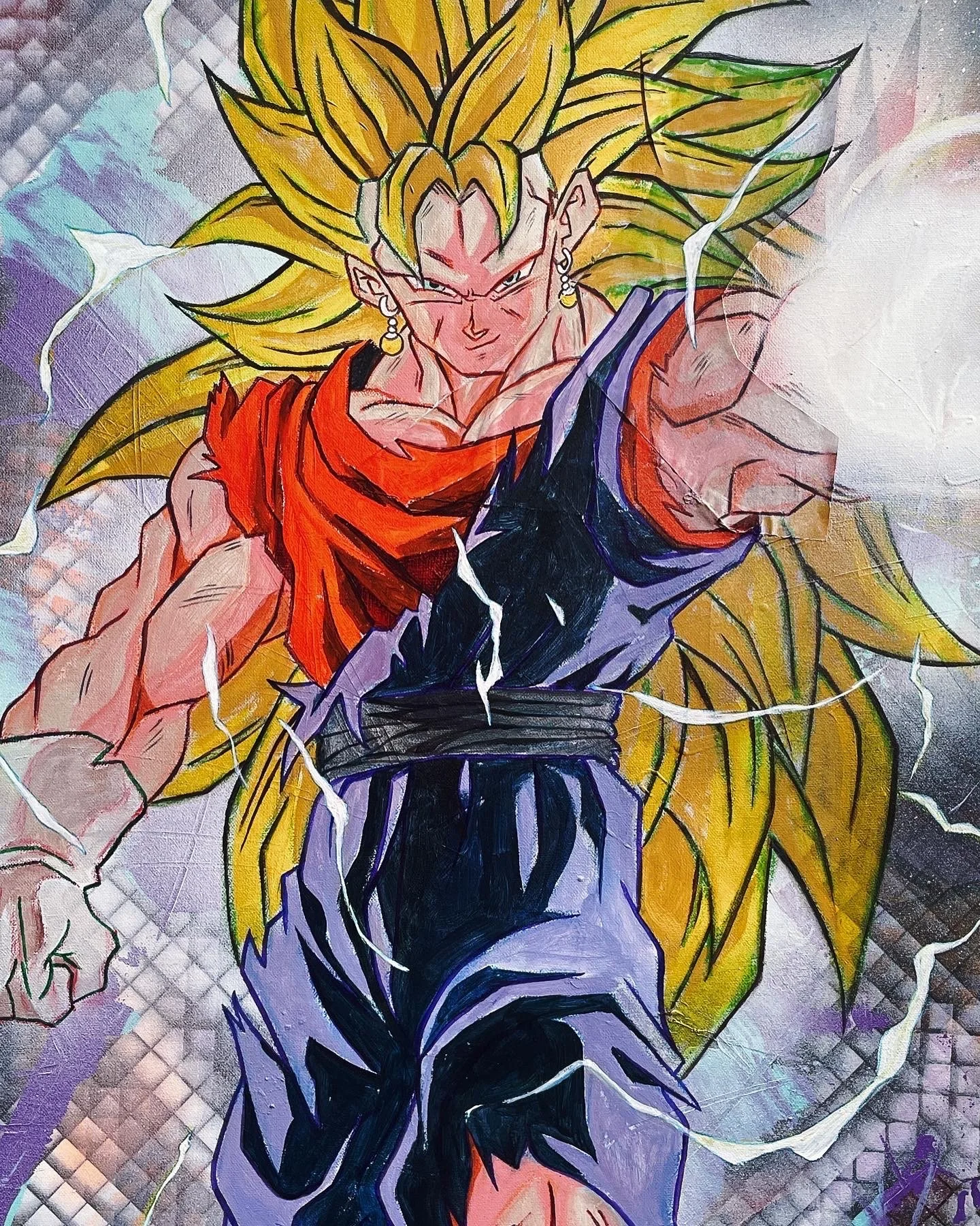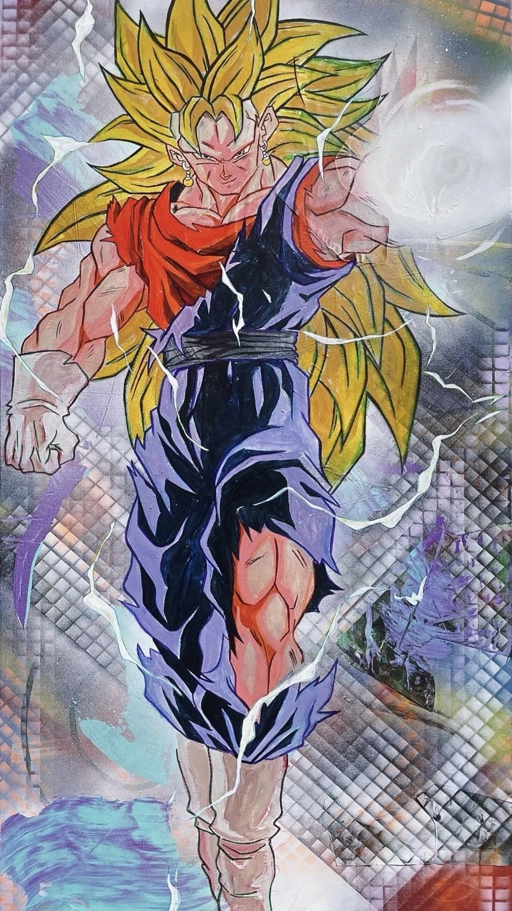 SS3 Vegito • SS3 Vegito • SS3 Vegito • Slide 1 Slide 1 (current slide) Slide 2 Slide 2 (current slide) Slide 3 Slide 3 (current slide) Slide 4 Slide 4 (current slide) SS 3 VegitoMixed Media on Canvas, 24 x 48", 2022