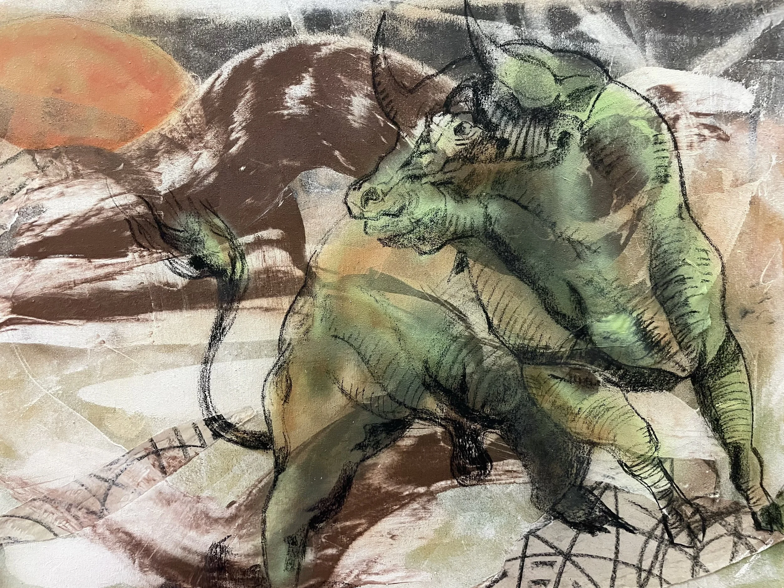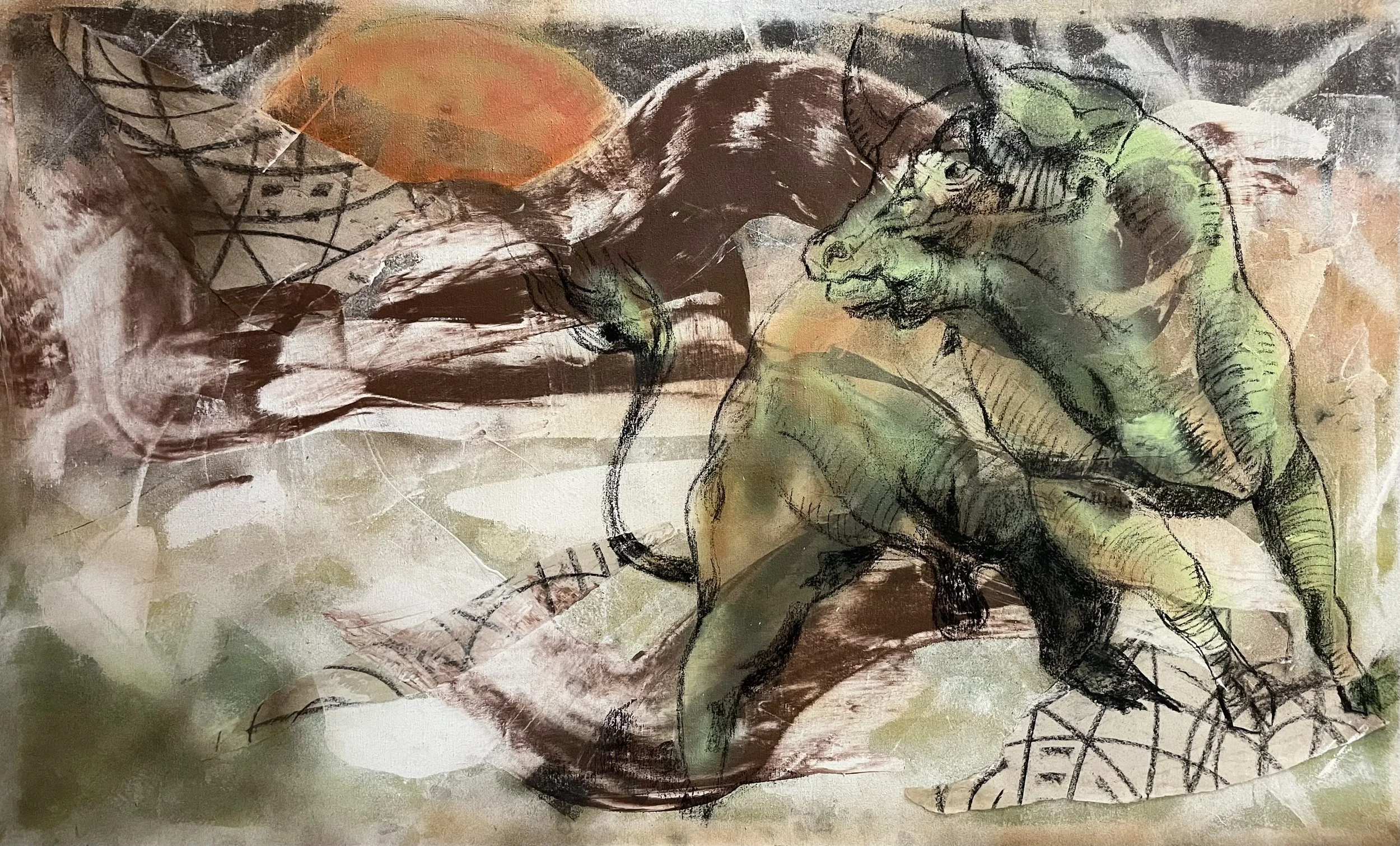 The Rising Bull • The Rising Bull • The Rising Bull • Slide 1 Slide 1 (current slide) Slide 2 Slide 2 (current slide) The Rising BullMixed Media on Canvas, 60 x 36", 2022
